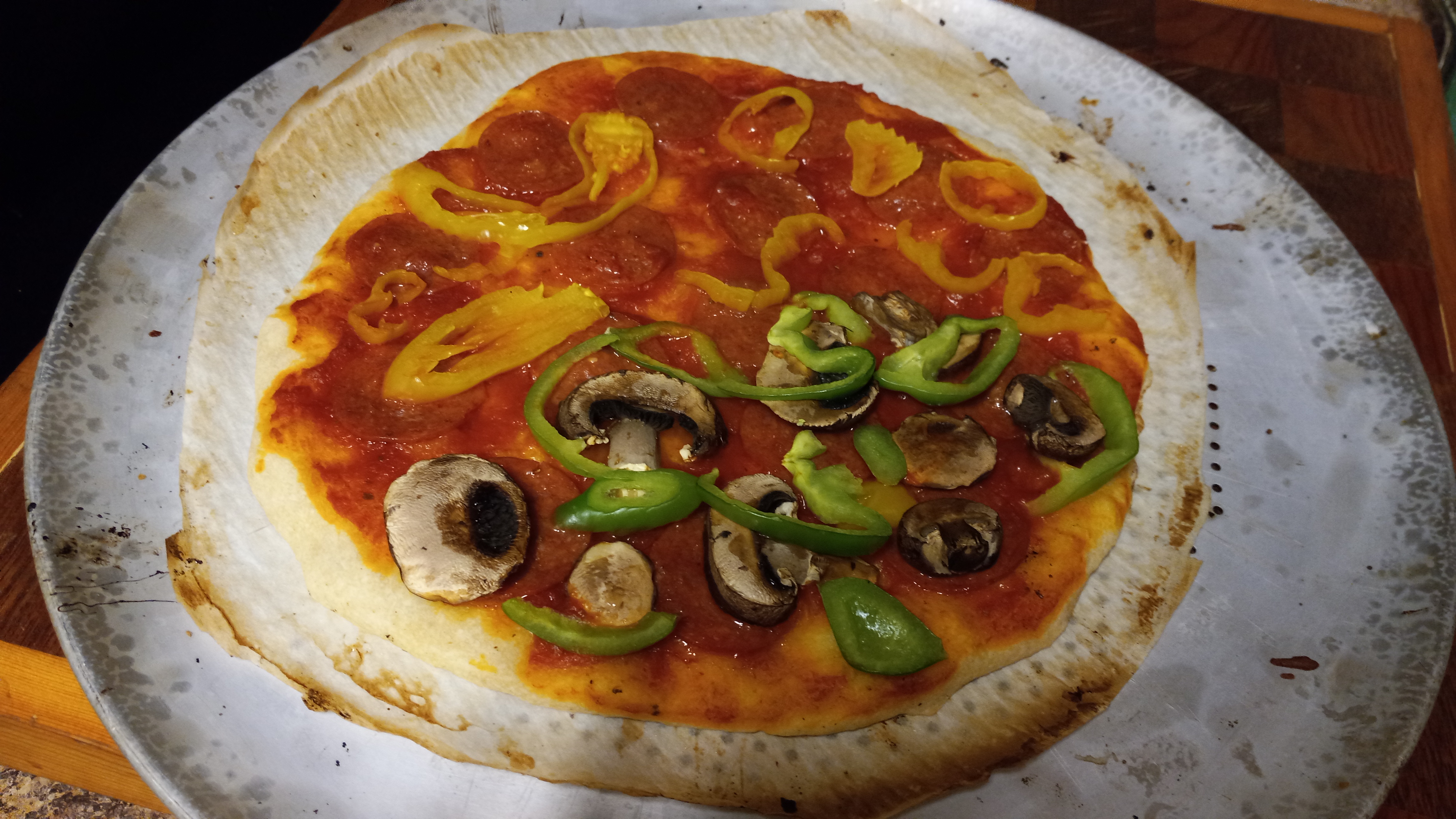 6. ALWAYS ask your family members if they like their pizza saucy, cheesy, thick crust or thin crust, etc. It is best to bake separate small pizzas for each person than dividing various topping amounts on a single pizza. For kids, I recommend traditional Ragu or Prego spagetti sauce in a jar (smooth, not chunky) instead of tomato sauce-paste mixture because of slightly higher sugar content.