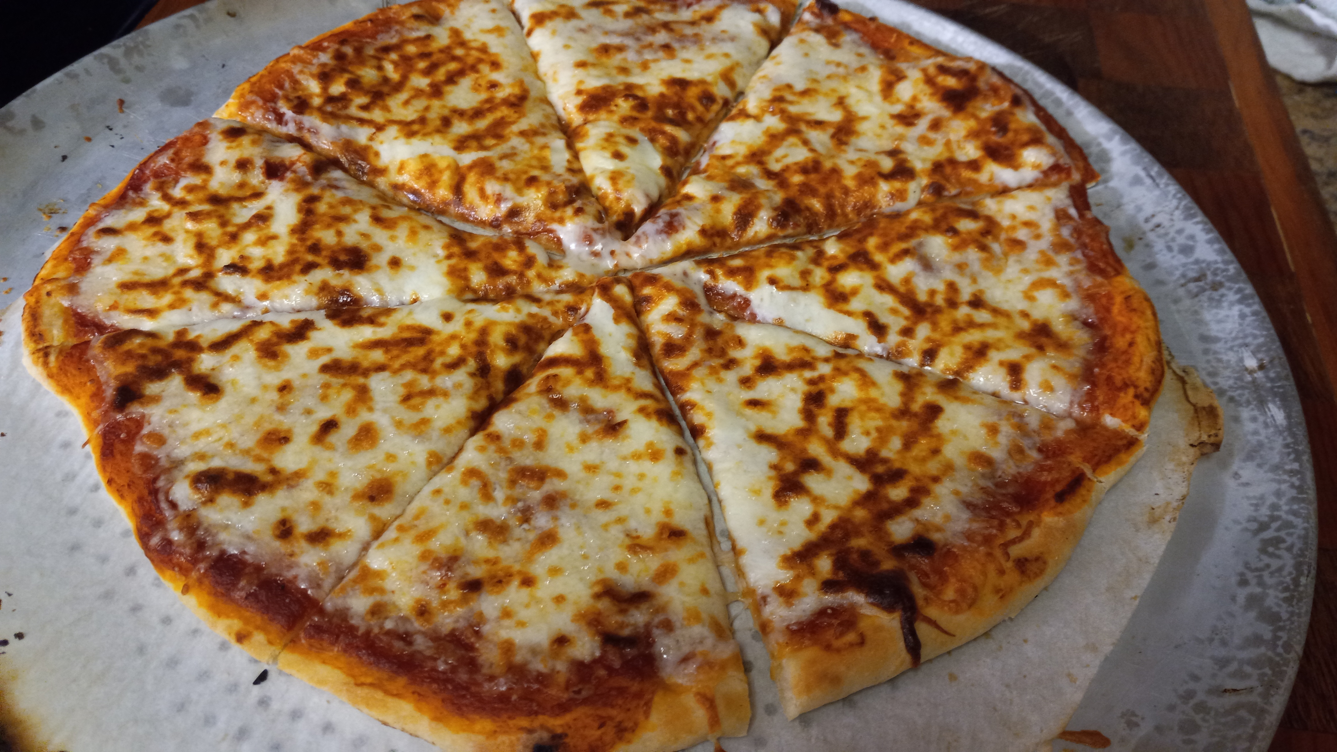 *Do not go over 9 minutes for the entire bake time or the crust bottom will be too dark to eat. You could bake at lower temperatures such as 375-425F, but the longer bake time will cause crust taste more like a thin slice of bread. Adding cheese at the end and returning it back into oven to finish baking ensures the crust is well done without any raw spots and any guess work which white cheese burns faster (like mozarella). It also helps cook out moisture from the sauce without leaving wet "gluey" layer between crust and sauce.