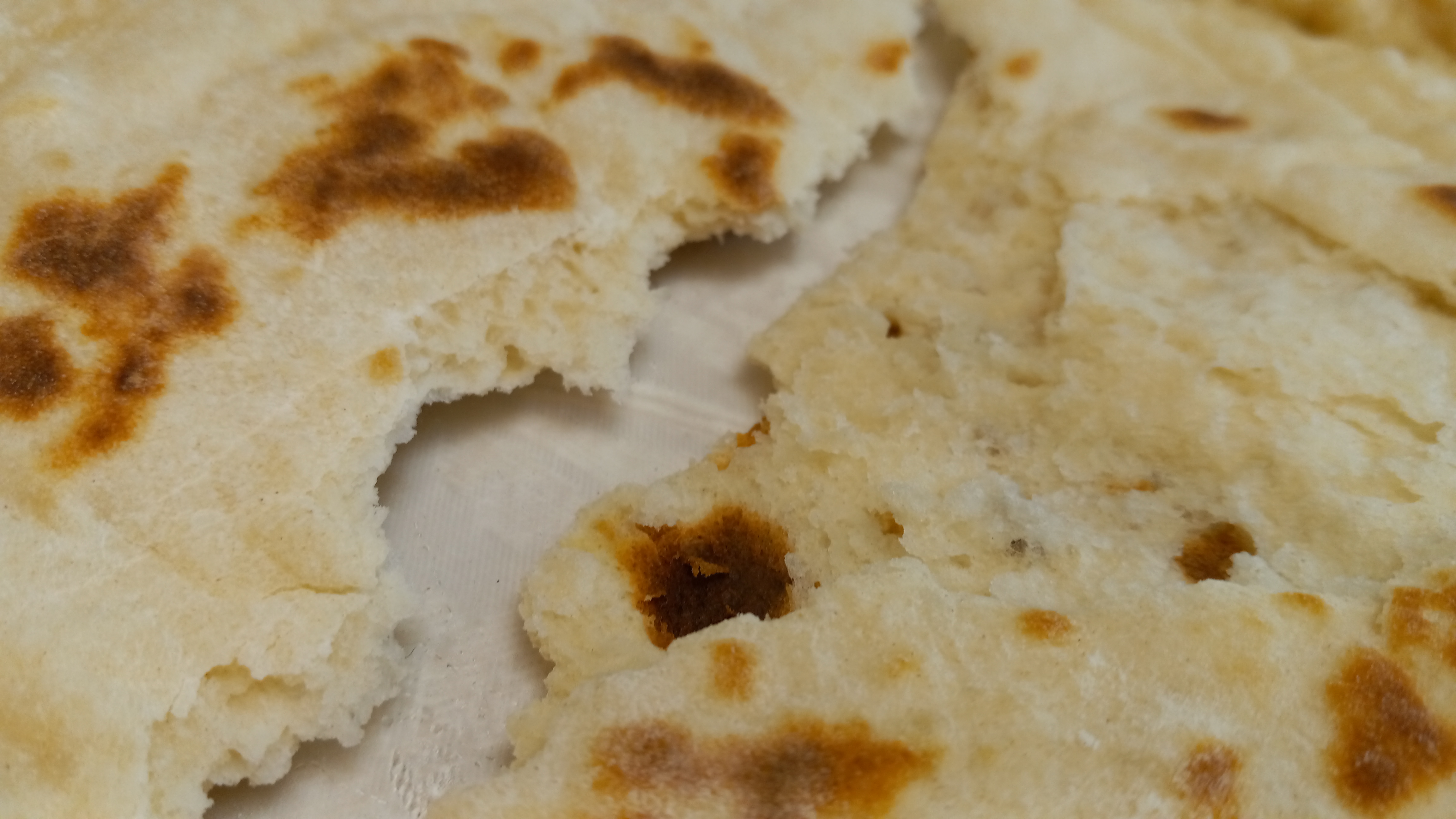Roll out to 1/4 inch circles, preheat non-stick frying pan to medium heat, fry without oil on each side flipping over after 30 seconds several times until desired browness achieved.