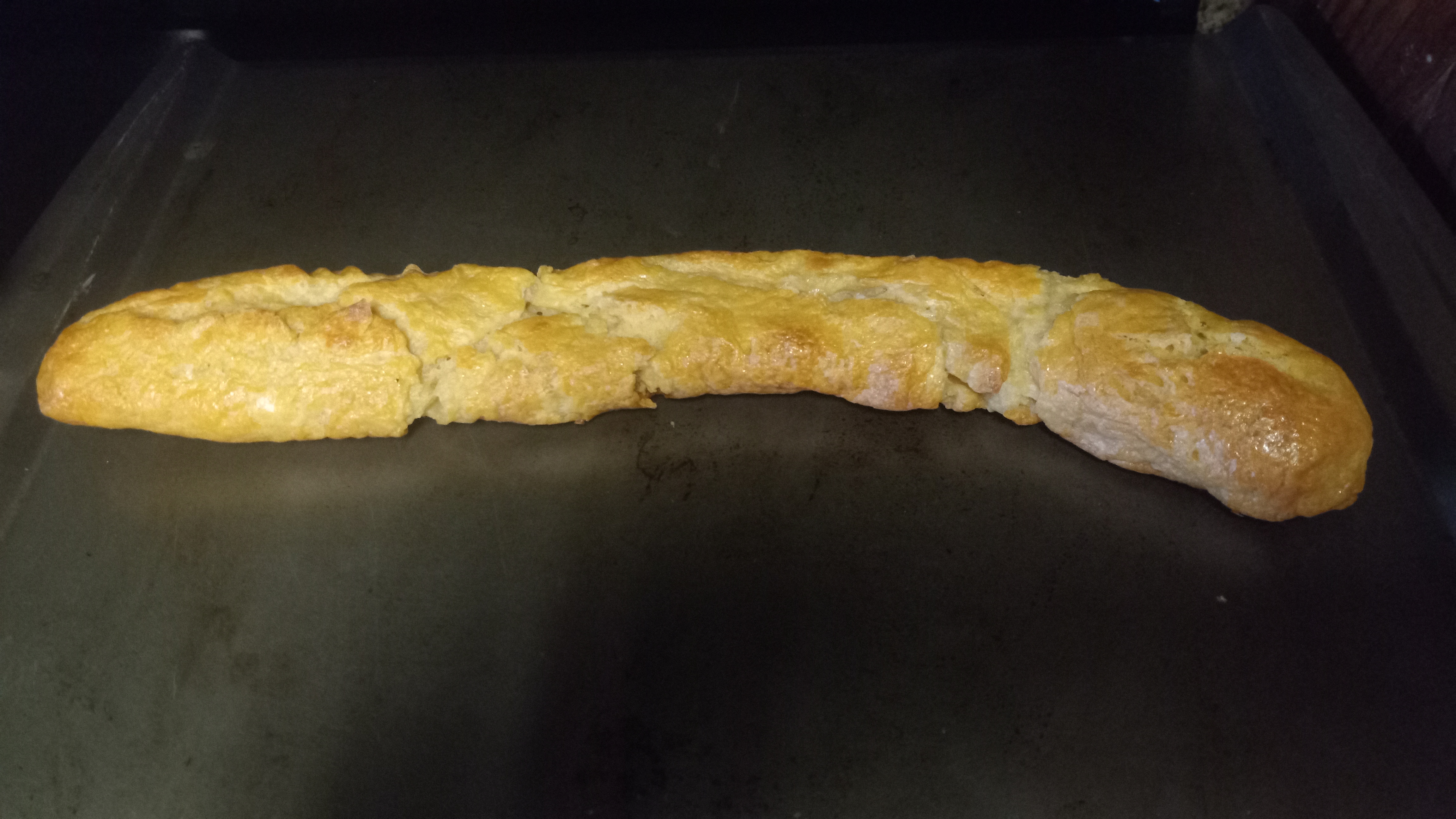 2. Bring water to boil, drop your bread sticks and dinner soup rolls into boiling water. Boil at 1 minute, flip, boil another minute. The longer boiling time, the crunchier the outside. (Go ahead and experiment up to 3 minutes boiling on each side, but be careful to watch out for cracking and separating on older doughs (if left longer than 2 days in the fridge). It will glue back together a little during baking.